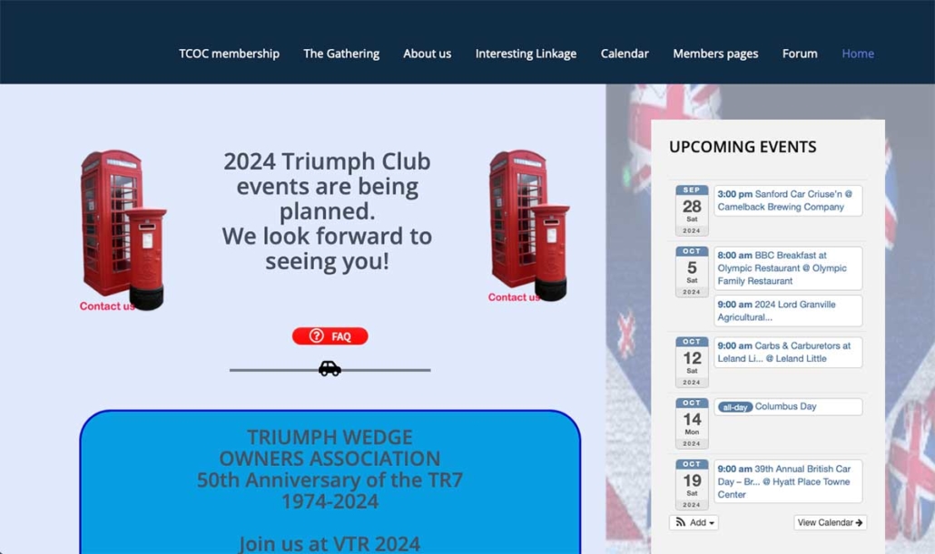 Our current site, like almost every other web page for little British car clubs, is very dated looking. As I was exploring other clubs’ web site to assess what kind of features/information they had, I was entertained by how many of them looked like they were straight out of the late 80s — some even had Under Construction gifs on them!